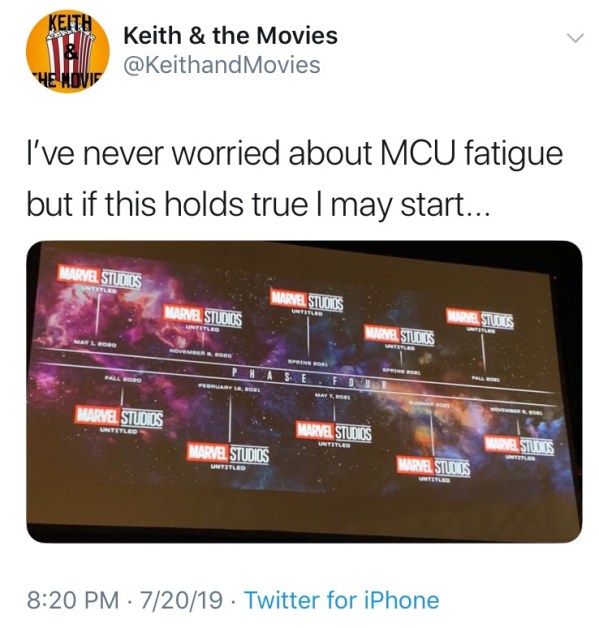 First some general thoughts. It shows how confident they must be to lay out very specific plans so far in advance. They’ve done it before but never quite to this degree. But money speaks volumes and the MCU movies have made a ton of cash. So it makes sense that they would be full steam ahead.