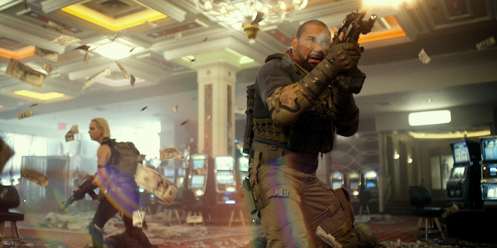 In addition to the terrific slow-motion opening montage and the fun world-building, the film is full of other Zack Snyder signatures from the hilariously fitting song drops to its longer running time. And Snyder shot the film himself which means you can expect a visually immersive setting and plenty of eye-popping (and head-popping) action sequences. Yet amid the blood, brains, and bravado he still manages to give each character their moments. Bautista gets high marks as does Schweighöfer, Arnezeder and the scene-stealing Hardwick.