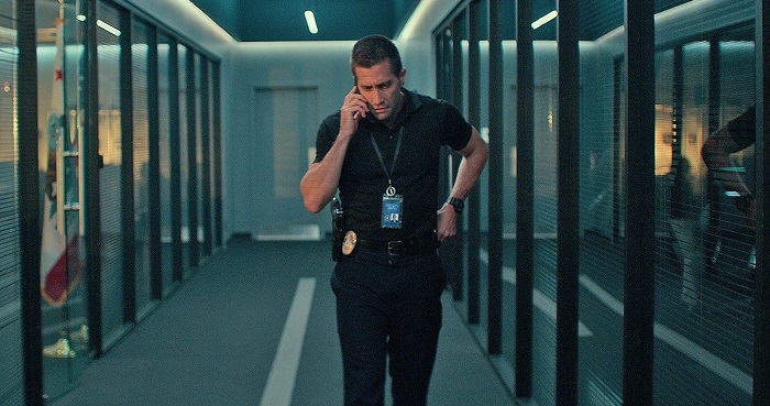 The entire film takes place in a 911 dispatch center where Joe Baylor (Jake Gyllenhaal) works as an operator. I won’t say too much about him considering a healthy chunk of the movie is spent unwrapping his troubled character over the course of one eventful night. Suffice it to say, he’s been taken off the streets pending an upcoming trial for [REDACTED]. The stress from his looming court date along with his recent split with his wife has Joe on edge.