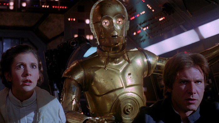 After being forced to evacuate on the Millennium Falcon, Han, Leia (Carrie Fisher), the loyal furball Chewbacca (Peter Mayhew), and protocol droid C-3PO (Anthony Daniels) find themselves pursued through space by Vader and his fleet of Star Destroyers. Meanwhile Luke (Mark Hamill) and the spirited astromech droid R2-D2 (Kenny Baker) are on their way to a remote swamp planet called Dagobah following a vision from Obi-Wan Kenobi (Alec Guinness). Luke’s old mentor (slain by Vader in the previous film) tells him to seek a Jedi Master named Yoda (puppeteer Frank Oz) who will complete his Force training.