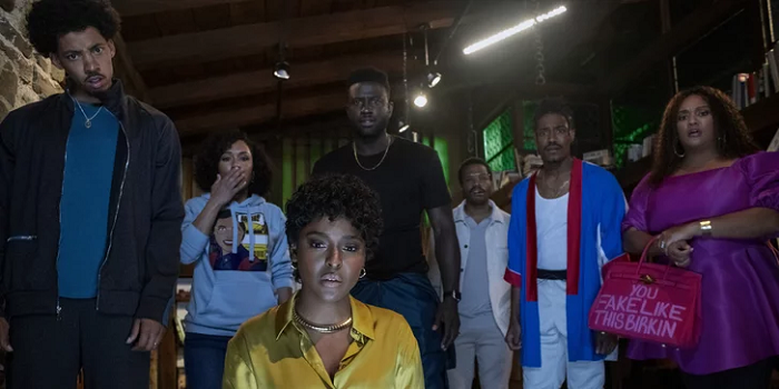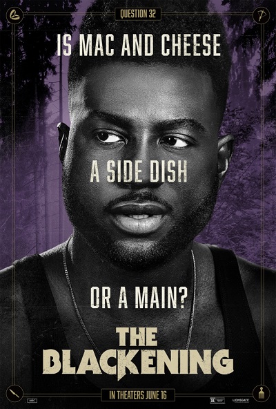 “The Blackening” plays with the idea that the Black character is often the first to die in slasher films. The story follows a group of friends who fit the many character types that often populate these movies. The difference in this case is they are all Black. The group must overcome a comical array of well-worn horror movie tropes if they have any hope of surviving. The character posters tap into what kind of humor we can expect.