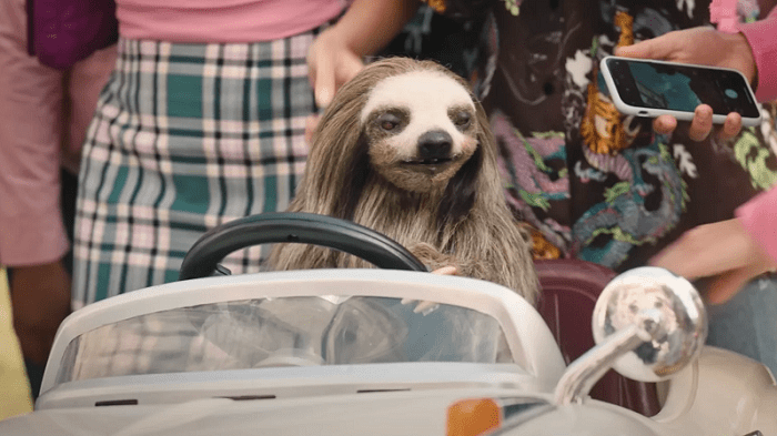 Whether they’re attacked by natural predators or hunted by human invaders, life can be tough for the notoriously slow-moving and easy-going tree sloths in the rain forests of Panama. Take the one we see in the opening scene (a hilariously obvious puppet that coos like a human baby). She’s minding her own business in her natural habitat before being tranquilized and nabbed by a poacher. She ends up in the hands of a slimy trader (Stefan Kapicic) who illegally buys and sells wild animals in the United States. But here’s the thing, this isn’t your run-of-the-mill tree sloth.