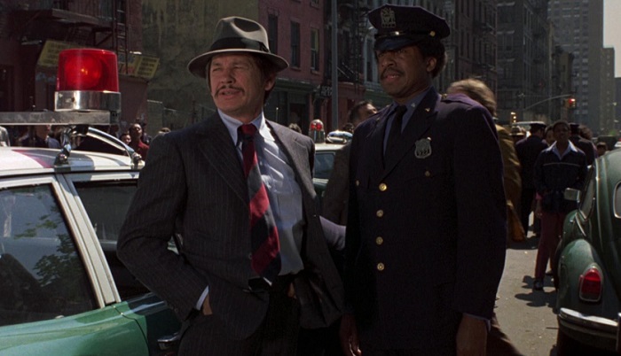 In Spanish Harlem, an 18-year-old is wanted for shooting and wounding a police officer during a liquor store robbery. He runs into an old apartment building as police officers gather outside. Detective Lou Torrey (Bronson) arrives and immediately goes in after him, chasing the suspect upstairs and out on a fire escape. The young man pulls a gun and Torrey shoots him dead. We’re quickly told that it’s the third teenager shot and killed by the New York Police Department in four weeks. This latest death leads to the Mayor receiving a flood of new complaints from angry citizens.