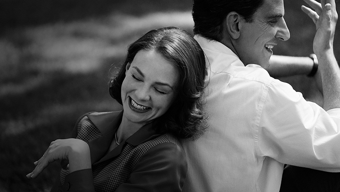 The movie’s full-color opening takes us to the Bernstein’s Connecticut home where Leonard (more affectionately called Lenny) is giving a television interview. He plays a few aching chords on his piano while lamenting how desperately he misses his late wife Felicia. After a quick shift to striking black-and-white, Cooper transports us back in time to November 14, 1943. On that faithful day a 25-year-old Leonard Bernstein, the assistant conductor of the New York Philharmonic, gets the call to fill in for the orchestra’s ailing lead conductor. The rest is music history.