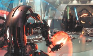 “Episode III” begins three years into the Clone Wars with an eye-popping opening rescue attempt sequence in the atmosphere above Coruscant. Chancellor Palpatine (Ian McDiarmid) has been captured by General Grievous, the commander of the Separatist droid army. Jedi Knights Obi-Wan Kenobi (Ewan McGregor) and Anakin Skywalker (Hayden Christensen) eventually succeed in rescuing the Chancellor but fail to capture Grievous. It’s an exhilarating start to the film, full of action, stunning visuals, and some meaningful story nuggets. It also adds some welcomed levity before the inevitable darker turn.